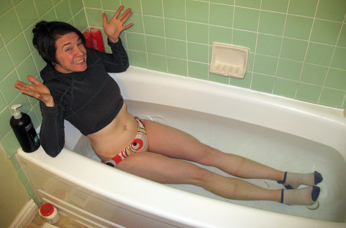 Normally I wouldn't post half-naked pictures of myself in the tub (unless it was a REALLY good shot) ... but I figure that since I kept my socks on, it's okay.