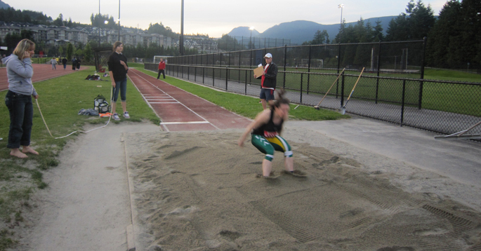 We signed up for the 100 metre sprint and long jump - two events I haven't done since way back in my college track and field days, up in Alaska where we had to train out side in snow, wearing bunny boots and snowsuits, running uphill both ways around the track ...