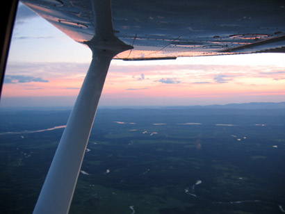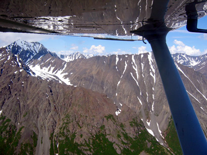 MAY 2005 | This is Windy Pass on the way to Fairbanks. There is another mountain at my other wingtip, and it's like a gate through to the Tanana Valley.