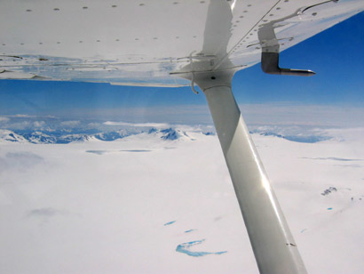 JUNE 2005 | Did you think I was lying? The Harding Ice Field from 7500 feet. The peaks in the picture are at about 6000 feet.