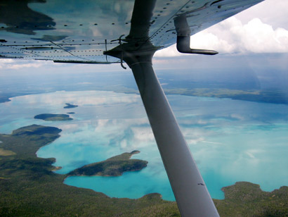 JUNE 2005 | It doesn't get much better than this. This is Lake Clark, just after flying through Lake Clark Pass. Who wouldn't want to plunk a little cabin down on one of those islands, strap floats to a plane and move to the middle of nowhere?