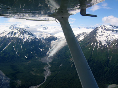 JUNE 2005 | This is a glacier running out of the Harding Ice field. I actually did turn the damn plane and flew up this valley and across the ice field.
